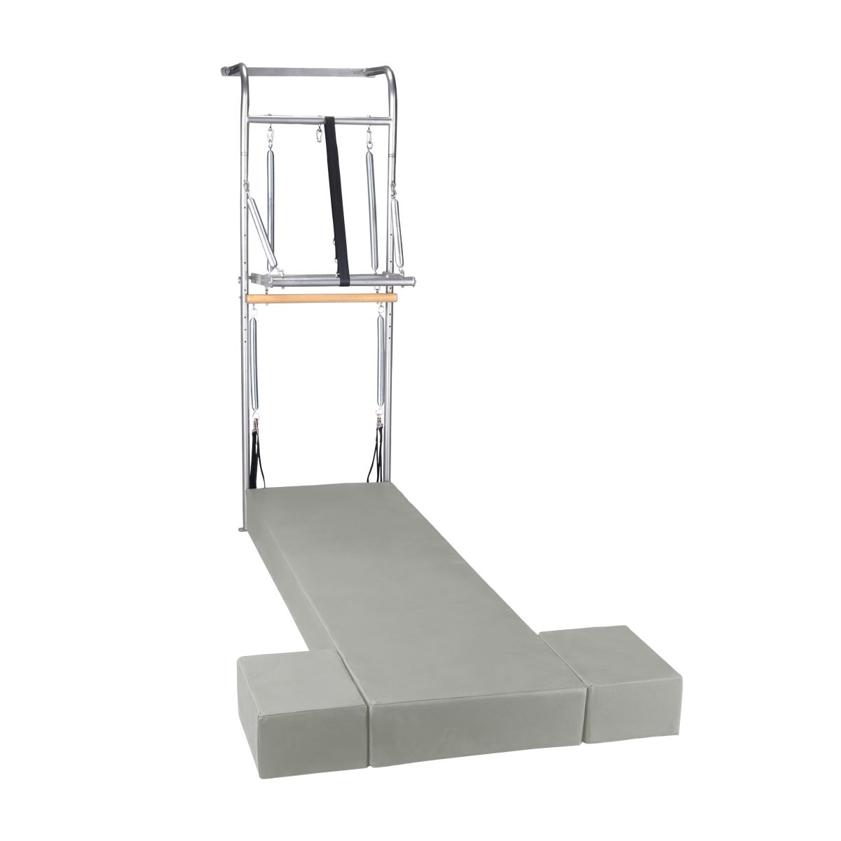 This Elina Pilates Wall Unit is the ideal machine for practicing Pilates in places where space is limited. With the Wall Unit, you can perform exercises like you would with a Tower, but in a smaller space.